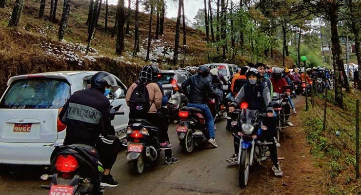 सयौंको सङ्ख्यामा हिँउ खेल्न नगरकोट पुगेपछि सवारी साधनको भीड बढेको थियो । फर्किने र जाने सवारीसाधनको सङ्ख्या अत्यधिक हुँदा राजमार्गका विभिन्न ठाउँमा सवारी जाम भएको थियो ।