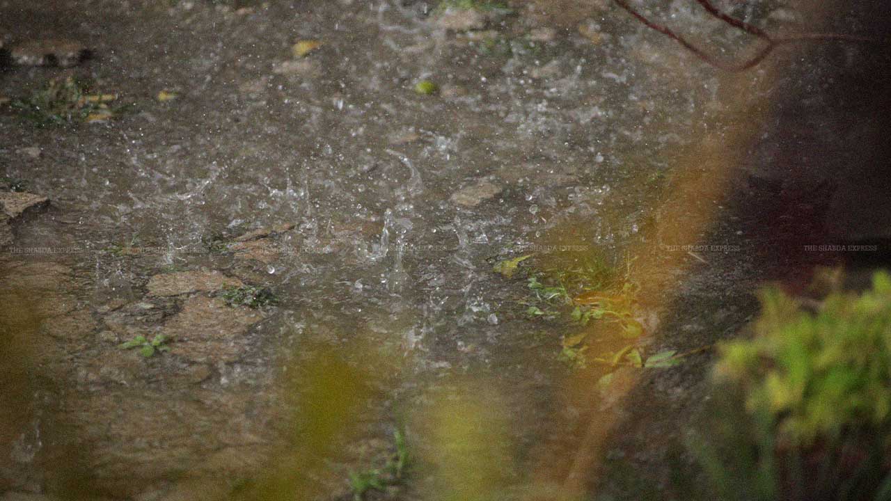 बिहानदेखि आकाश धुम्मिएको भएपनि मध्याह्नतिर मेघ गर्जन र चट्याङसहित वर्षा भएको हो ।