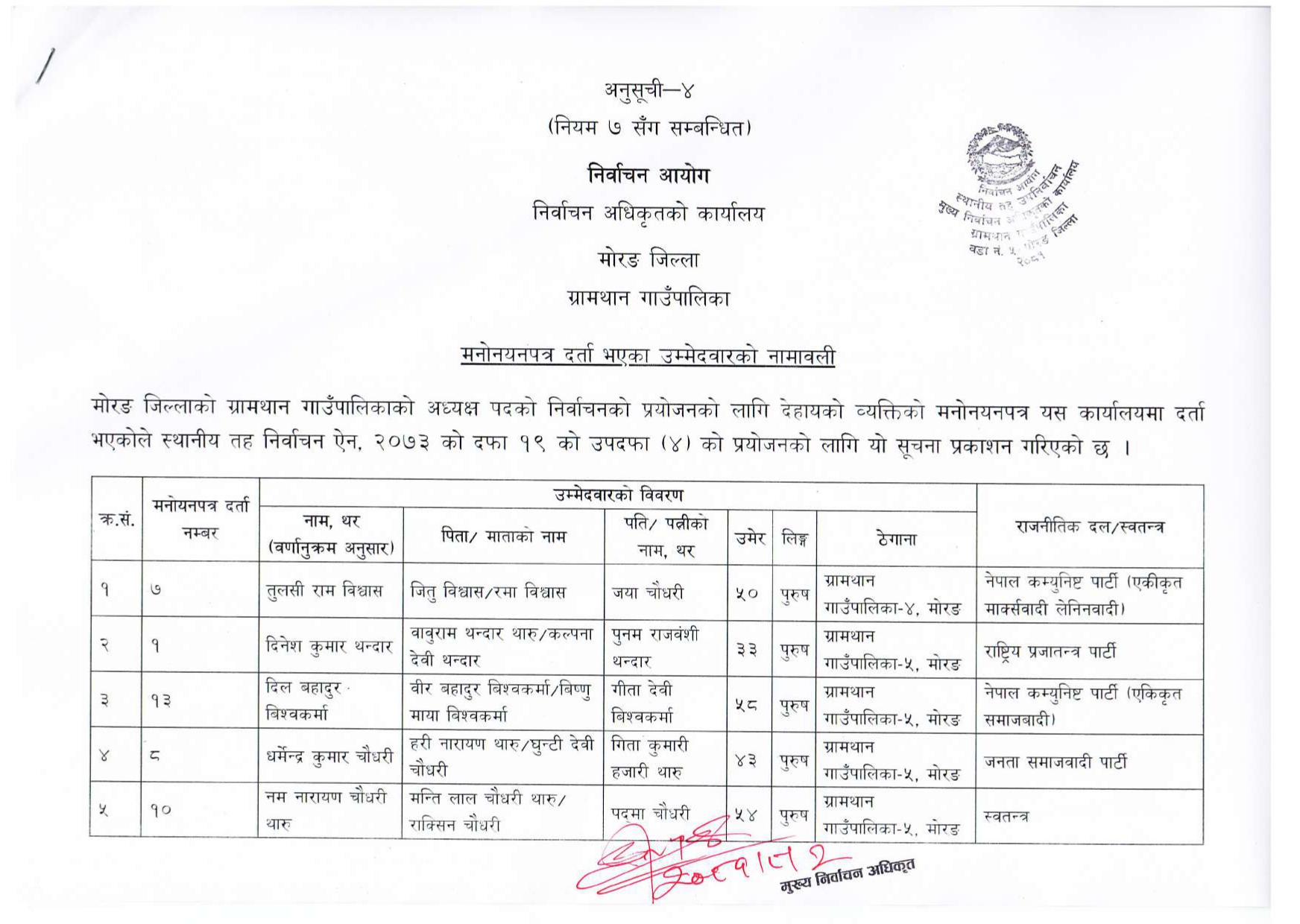यी हुन् ग्रामथान गाउँपालिका अध्यक्ष बन्ने दाउमा रहेका १६ जना