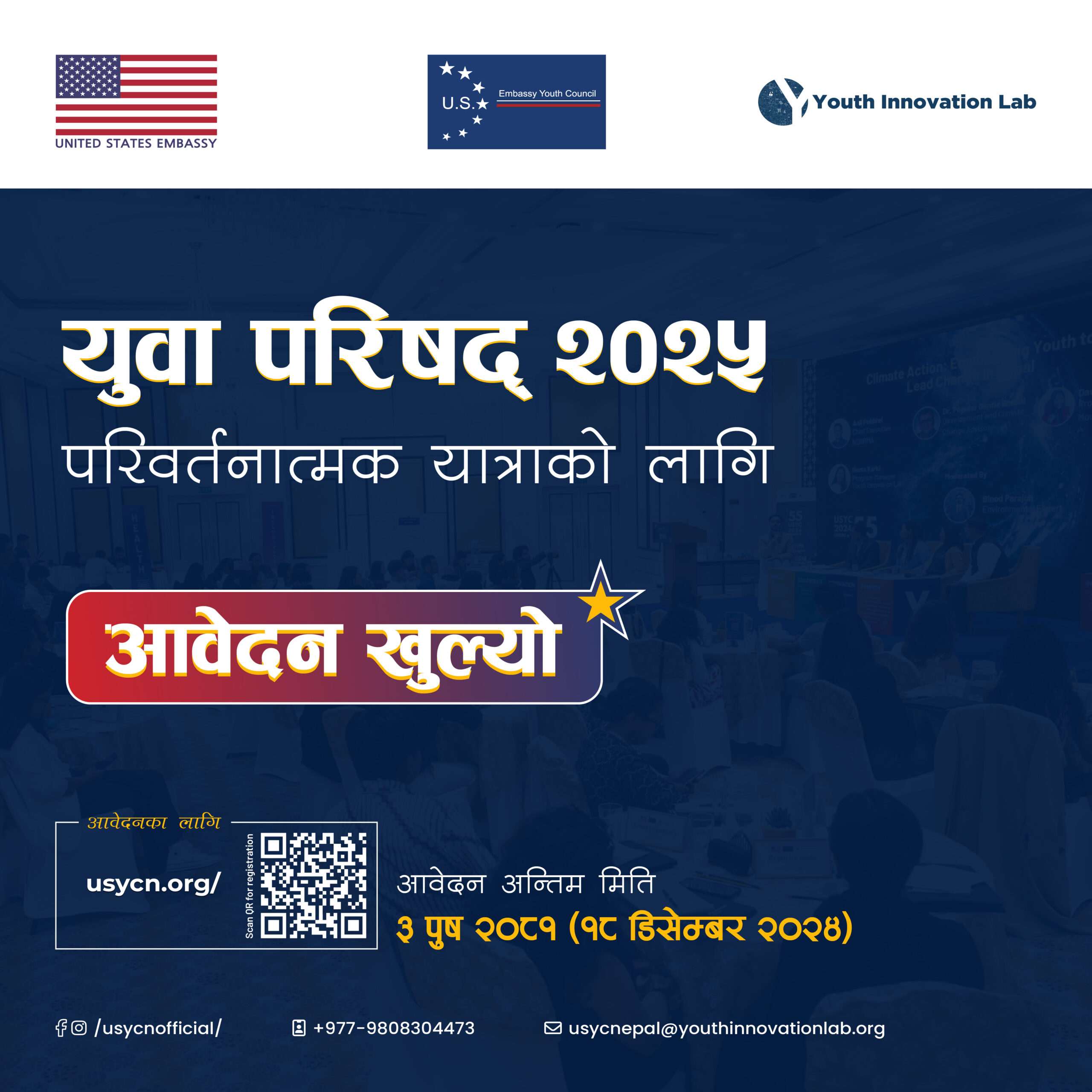 अमेरिकी दूतावास युवा परिषद्का लागि अन्तिम म्याद पुस ३ गतेसम्म तोकिएको छ ।