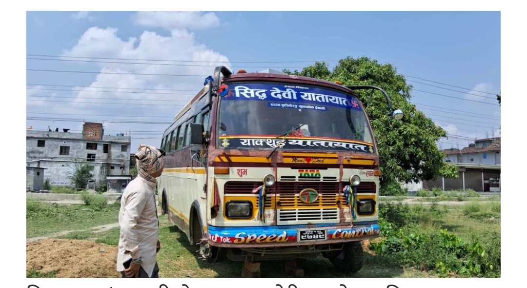 बसको अगाडिको सिसाको माथिल्लो भागमा सिद्धदेवी यातायात र तल्लो भागमा याक्थुङ यातायात लेखिएको छ ।
