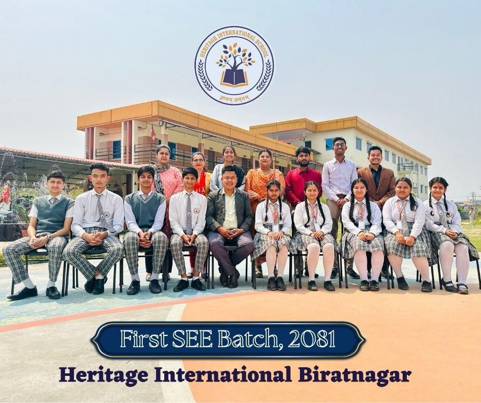 विराटनगर महानगरपालिका-४, बरगाछीको सप्तकोशी मार्गमा अवस्थित हेरिटेज इन्टरनेसनल स्कुलका परीक्षार्थीहरूले एसइईमा उत्कृष्ट नतिजा हासिल गरेका हुन् ।