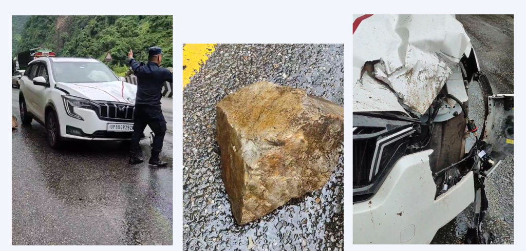 नजिकै गुडिरहेको कारमाथि ढुंगा खसेर घाइते भएका तीन जना नै भारतीय रहेको खुलेको छ ।