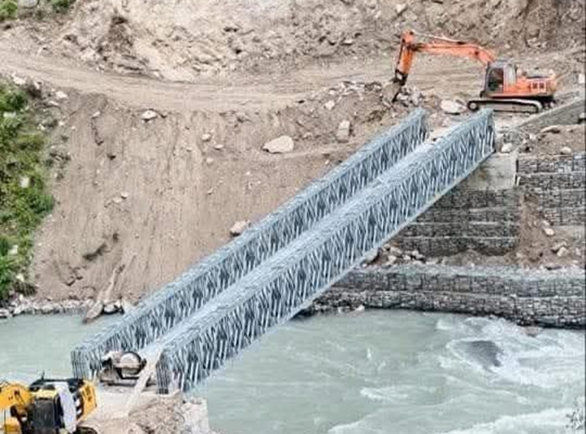 हुम्ला-मुगु लिङ्क रोड : लोतीखोलामा ‘बेलीब्रिज’ जडान