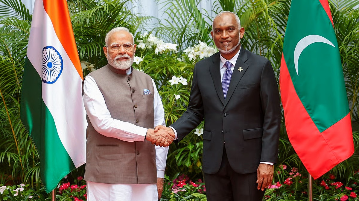 क्षेत्रीय शक्ति भारतले आफ्नो सानो तर रणनीतिक रूपमा महत्त्वपूर्ण छिमेकी राष्ट्र माल्दिभ्स सन् २०२३ मा भारतविरोधी मञ्चमा राष्ट्रपति मोहम्मद मुइज्जुको निर्वाचनपछि आफ्नो प्रतिद्वन्द्वी चीनको कक्षामा जाँदै गरेकामा चिन्ता व्यक्त गरेको थियो ।