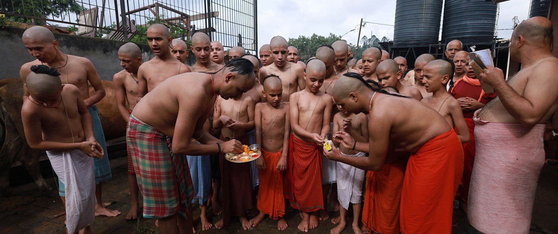 एजेन्सी । जनै पूर्णिमाको अवसरमा शनिबार पशुपतिस्थित संस्कृत विद्या पीठमा बटुकहरुले सामूहिक रुपमा जनै लगाएका छन् । जनैपूर्णिमाका दिन उनीहरूले बिहान स्नान गरी शुद्ध भई विभिन्न मन्त्रोचारण गरी, विधिवत् रुपमा जनै लगाएका हुन् ।