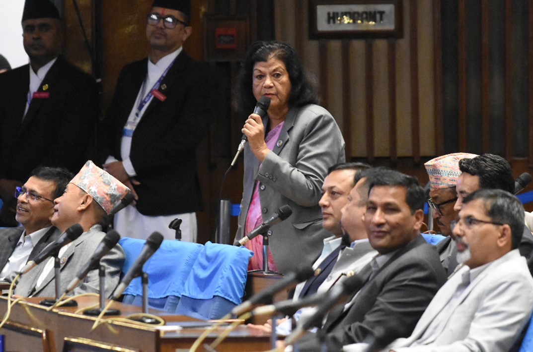 ‘हिजो दिनभर नौटंकी देखियो । एमाले र नेपाली कांग्रेसहरूले आफना् माननीयज्यूहरूलाई खाली कागजमा सही गराएको भन्ने खबर सुनियो । यो के को लागि भन्दा उपसभामुखलाई महाअभियोग लगाउने रे,’ उनले भनिन्, ‘उहाँहरूलाई संवैधनिक परिषद्मा बहुमत पुगेन । बहुमत पुर्याएर आसेपासेलाई नियुक्तिका लागि उपसभामुखमाथि महाअभियोग लगाउने कुरा चल्यो । कांग्रेस र एमालेले आफ्ना सांसदहरूलाई खाली कागजमा सही गराएका छन् । सही गराउने कस्तो पार्टी ? सही गर्ने कस्ता माननीयहरू ? धिक्कार होस् ।’