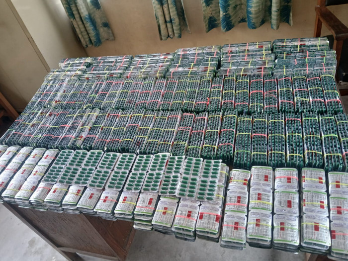 प्रहरीका अनुसार उनको साथबाट ट्रामाडोल ५०,५४० क्याप्सुल र डाइसाइक्लोमिन ९,५२० ट्याब्लेट गरी कुल ६०,०६० थान लागूऔषध बरामद गरिएको छ।